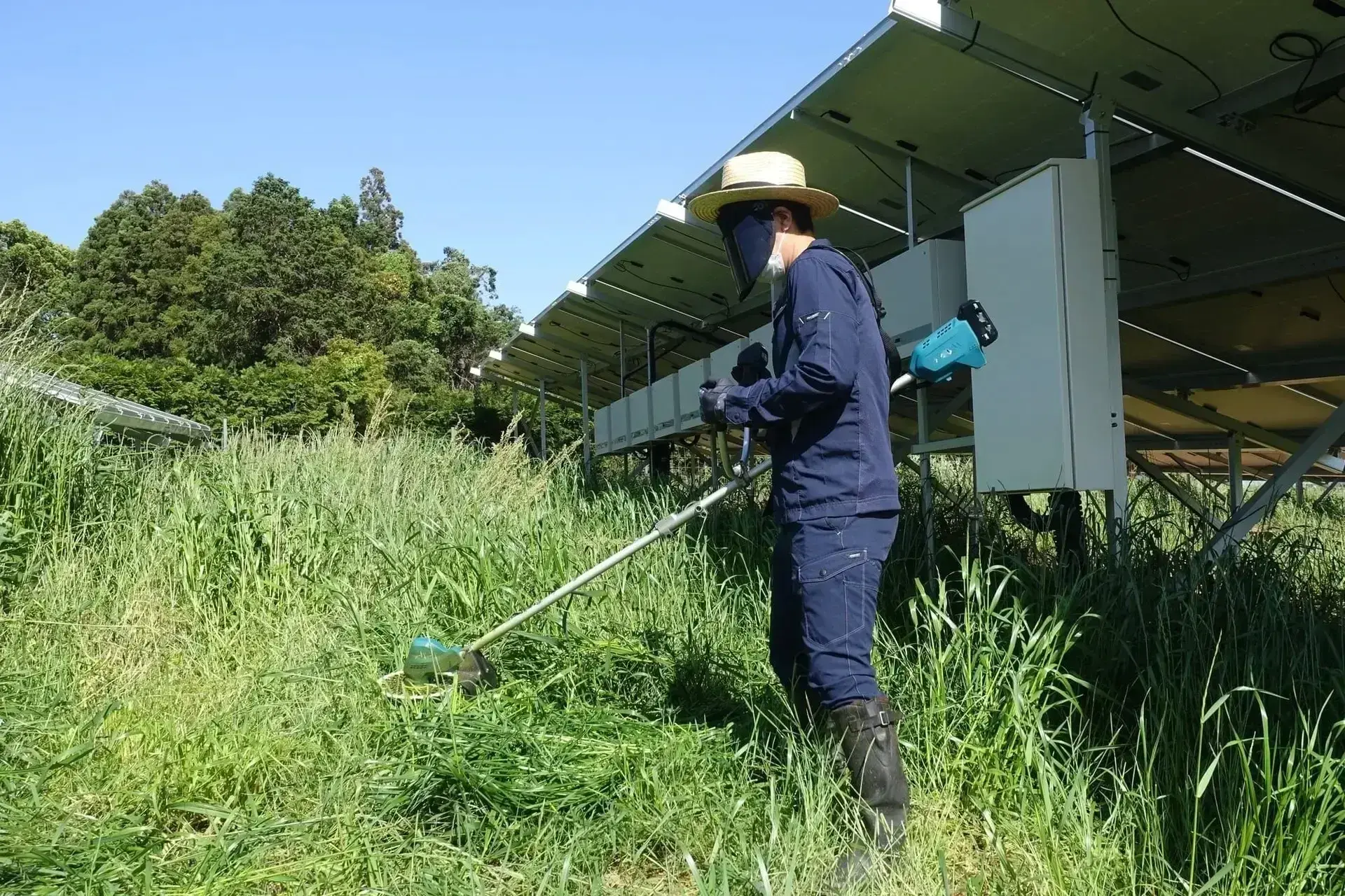 パネルや電気設備の周りに雑草が生えてしまうと発電に影響があるだけでなく、点検も容易にできません。しっかり草刈をし、除草剤を使用して管理する事でそれらを防ぐことができます。